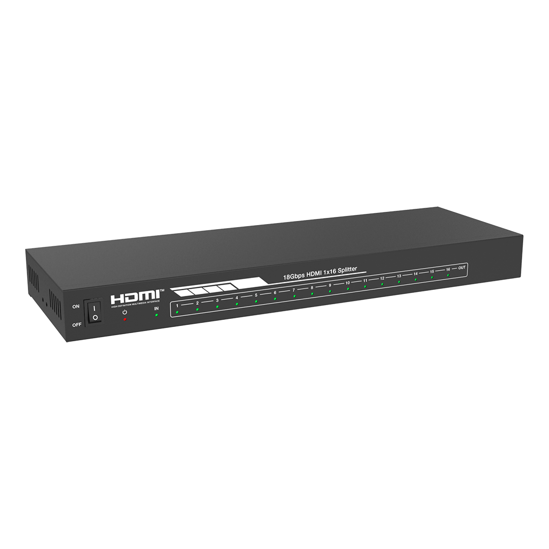 Разветвитель HDMI 18 Гбит/с 1x16 может синхронно распределять сигнал 1 источника HDMI на 16 устройств отображения HDMI. Поддерживаемое разрешение видео до 4K2K@50/60 Гц 4:4:4. Продукт поддерживает расширенное управление EDID. Также поддерживает функции HDR, HDR10, HDR10+, HLG и Dolby vision. Данный сплиттер может широко использоваться в мультимедийных конференц-залах, телевизионном обучении, проектах с большими экранами и других местах.