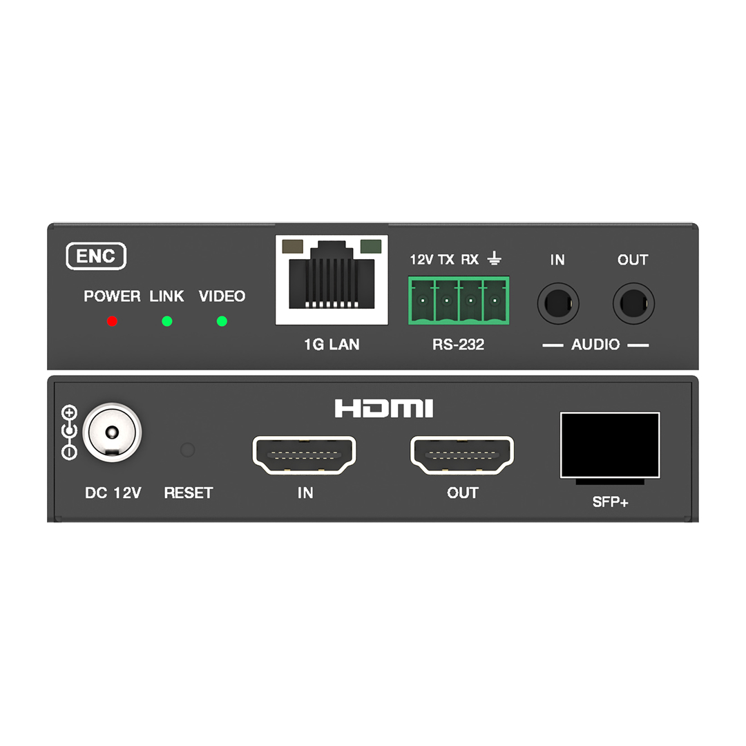 Передатчик (энкодер) AV over IP. Предназначен для работы с SDVoE совместимым приёмником, обеспечивающим приём сигналов аудио/видео, RS-232 и Ethernet по оптоволоконному SFP соединению в рамках 10Gb/s сети. Передатчик способен без задержки отдать высококачественный несжатый HDMI контент с разрешением 4K60Hz, поддержкой HDR, полной глубиной цвета и многоканальным аудио в формате HD Bitstream. Устройство оснащено SFP портом с возможностью передачи сигналов на расстояние до 40км по одномодовому или до 300м по многомодовому оптоволоконному кабелю. Порт 1G LAN предназначен для использования в качестве вспомогательного порта управления продуктом или расширения Ethernet. Также передатчик имеет выделенный HDMI loop out порт и поддерживает двунаправленную передачу аналогового стереозвука. Решение AV over IP на базе технологии SDVoE позволяет создать разветвлённую аудио/видео матрицу используя высокоскоростную инфраструктуру 10Gb/s сети.