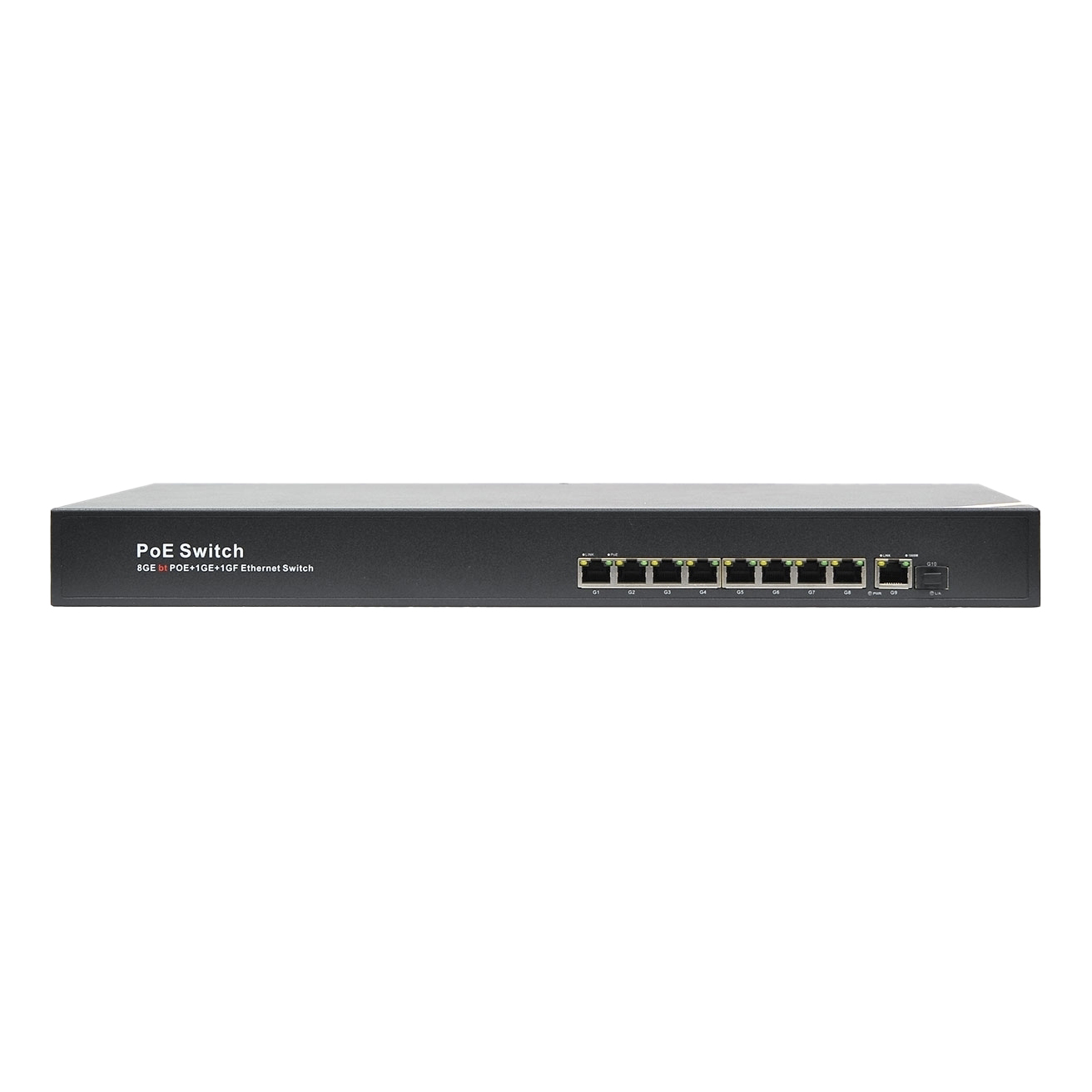 Неуправляемый оптоволоконный коммутатор PoE с 9 портами 10/100/1000M RJ45 и 1 портом слота SFP для восходящей линии связи 1000M, порты 1-8 могут поддерживать стандарт IEEE 802.3af/at PoE, внешний источник питания 110 Вт.