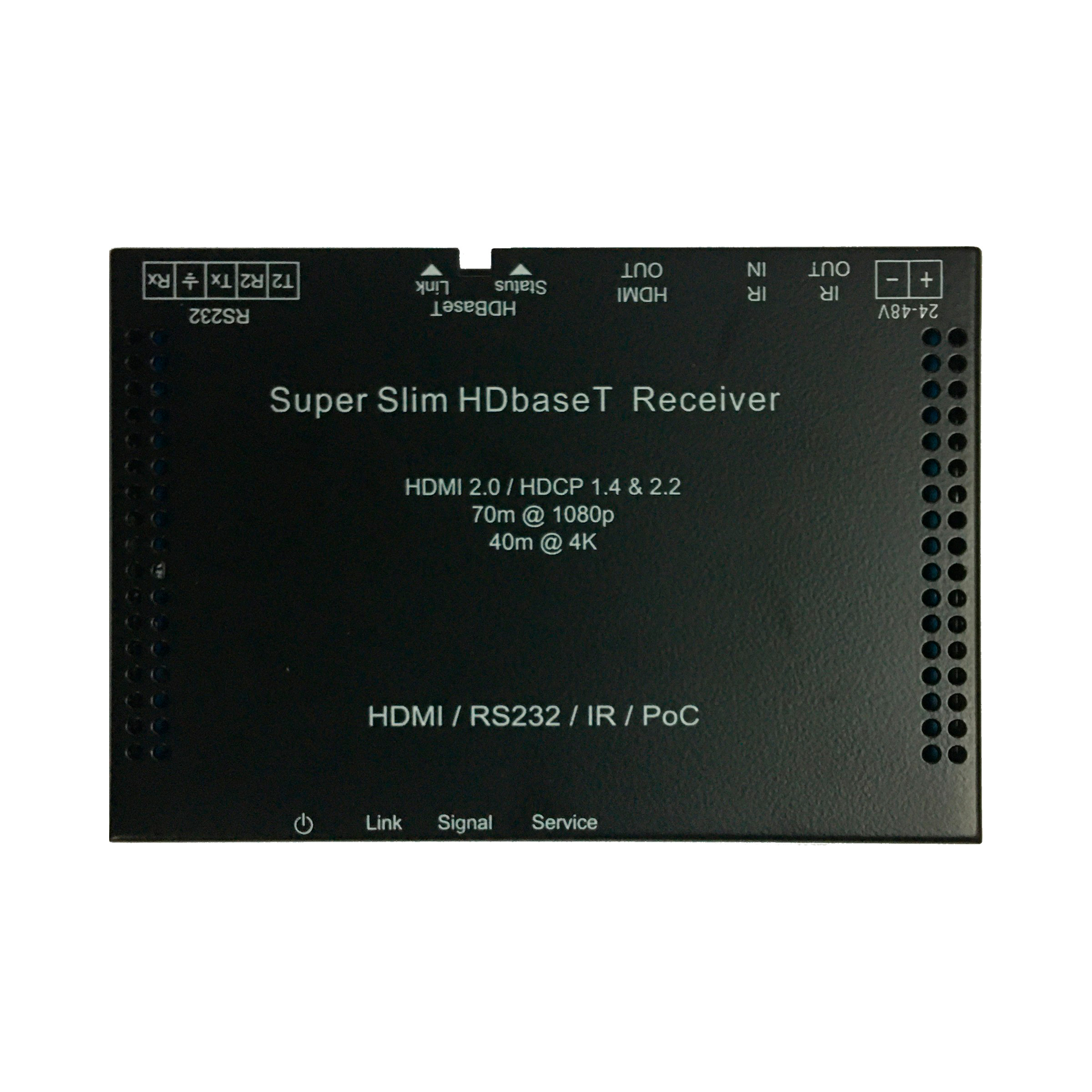 - Питание по HDBaseT — технология iPoC обеспечивает питание приёмника и передатчика от одного блока питания 48 В по линии HDBaseT