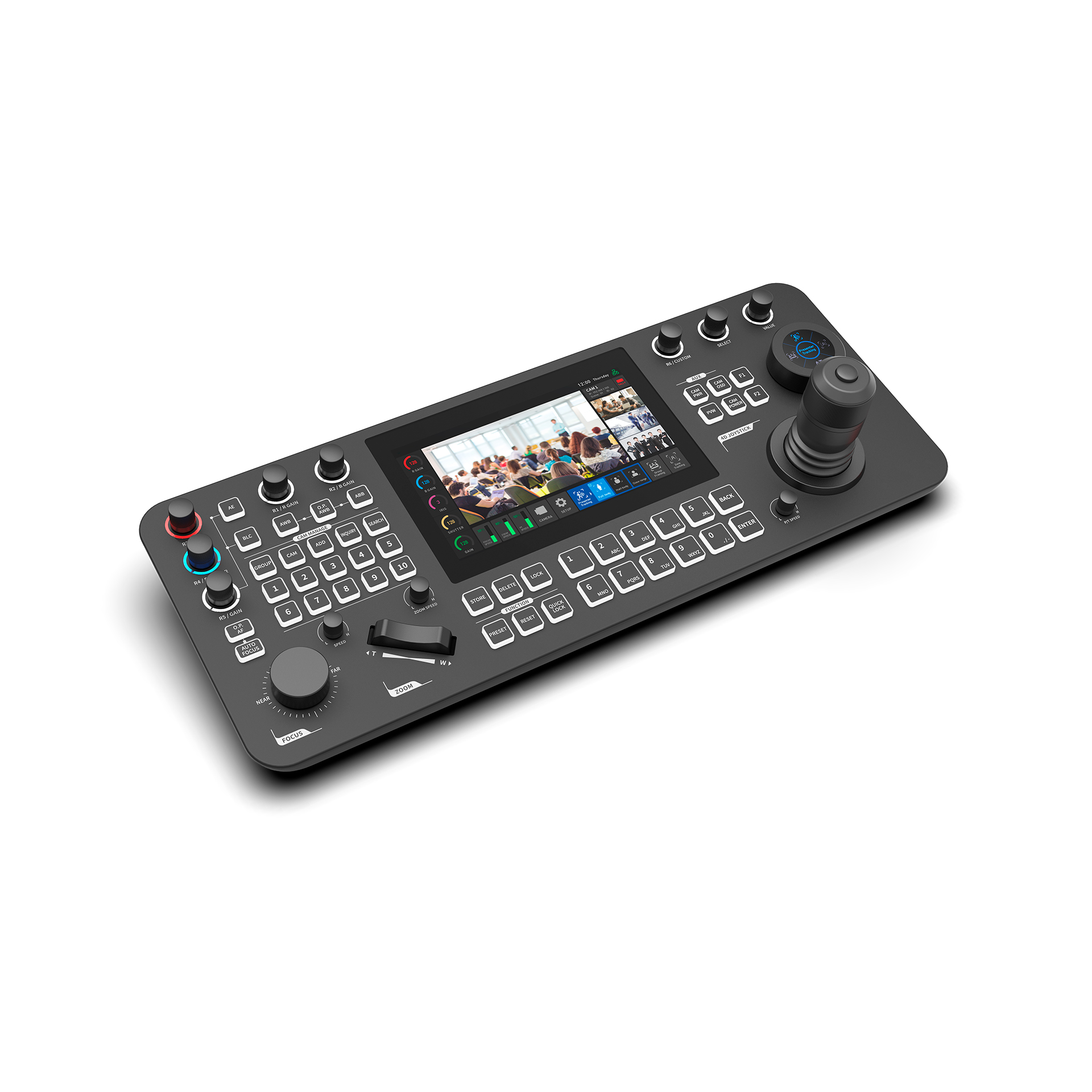 Пульт оснащен высокопроизводительным процессором и 7-дюймовым сенсорным HD-экраном. Есть поддержка мониторинга четырех видеопотоков в реальном времени с точным управлением «One-to-One». Также поддерживается унифицированное управление до 254 камер, визуальное управление с помощью ИИ и обратная связь Tally в реальном времени.